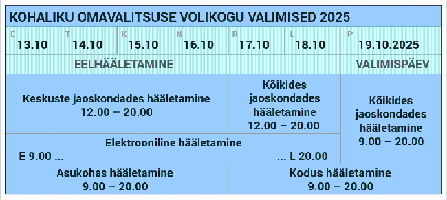 Täna algab kohaliku omavalitsuse volikogu valimiste hääletamine