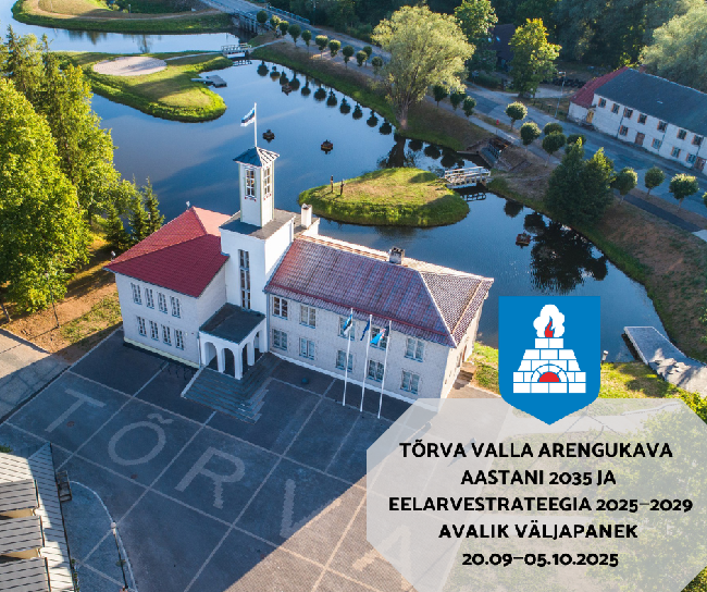 Tõrva Vallavolikogu otsustas 18.09.2025 istungil suunata Tõrva valla arengukava aastani 2035 ja eelarvestrateegia 2025-2029 eelnõu avalikule väljapanekule ajavahemikul 20.09.2025−05.10.2025.